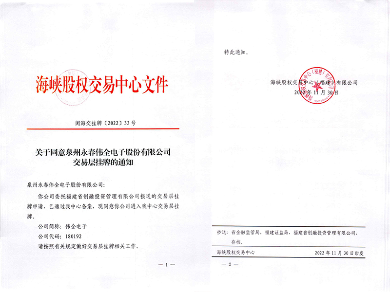 偉全電子掛牌函