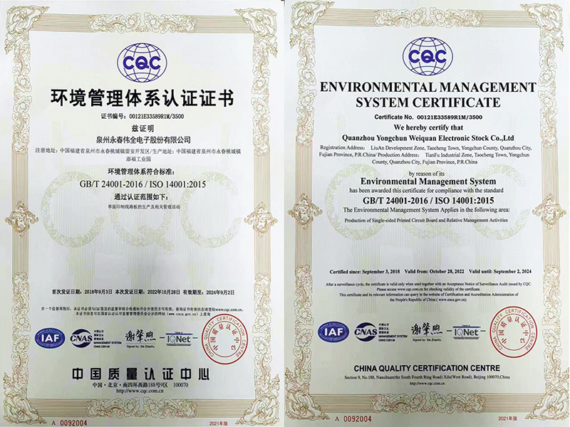 環(huán)境管理體系認(rèn)證證書(shū)