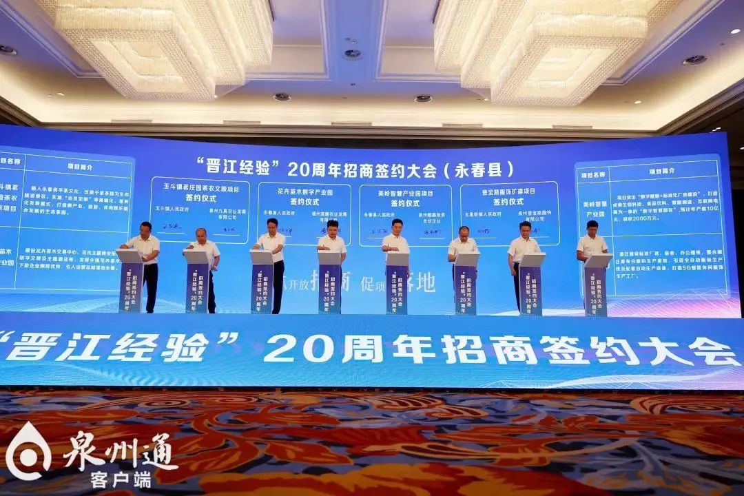 8月16日,福建省泉州市委、市政府舉行“晉江經(jīng)驗”20周年招商簽約大會。省委常委、市委書記劉建洋出席大會并講話,市長蔡戰(zhàn)勝主持,市人大常委會主任李建輝、市政協(xié)主席肖漢輝出席。